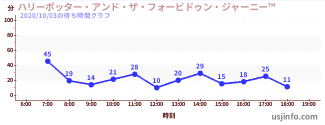 • ハリーポッター・アンド・ザ・フォービドゥン・ジャーニー™$B$N(B2020年10月03日の待ち時間
