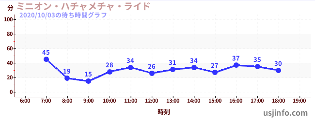 • ミニオン・ハチャメチャ・ライド$B$N(B2020年10月03日の待ち時間