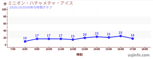 • ミニオン・ハチャメチャ・アイス$B$N(B2020年10月03日の待ち時間