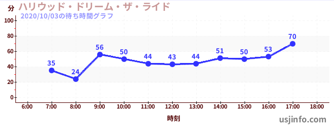 • ハリウッド・ドリーム・ザ・ライド$B$N(B2020年10月03日の待ち時間