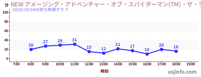 • NEW アメージング・アドベンチャー・オブ・スパイダーマン(TM)・ザ・ライド 4K3D$B$N(B2020年10月04日の待ち時間