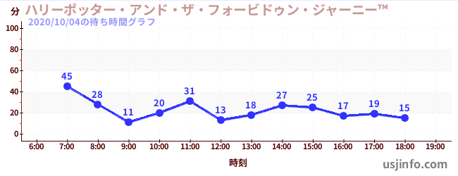 • ハリーポッター・アンド・ザ・フォービドゥン・ジャーニー™$B$N(B2020年10月04日の待ち時間