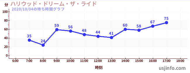 • ハリウッド・ドリーム・ザ・ライド$B$N(B2020年10月04日の待ち時間