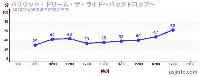 • ハリウッド・ドリーム・ザ・ライド〜バックドロップ〜$B$N(B2020年10月06日の待ち時間