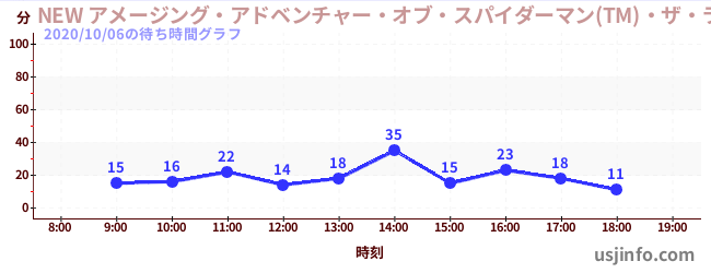 • NEW アメージング・アドベンチャー・オブ・スパイダーマン(TM)・ザ・ライド 4K3D$B$N(B2020年10月06日の待ち時間