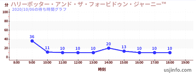 • ハリーポッター・アンド・ザ・フォービドゥン・ジャーニー™$B$N(B2020年10月06日の待ち時間