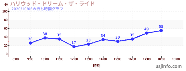 • ハリウッド・ドリーム・ザ・ライド$B$N(B2020年10月06日の待ち時間
