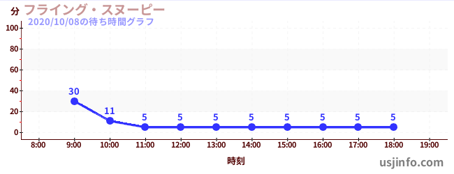 • フライング・スヌーピー$B$N(B2020年10月08日の待ち時間