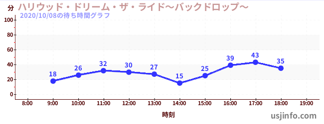 • ハリウッド・ドリーム・ザ・ライド〜バックドロップ〜$B$N(B2020年10月08日の待ち時間