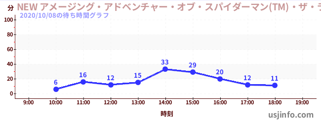 • NEW アメージング・アドベンチャー・オブ・スパイダーマン(TM)・ザ・ライド 4K3D$B$N(B2020年10月08日の待ち時間