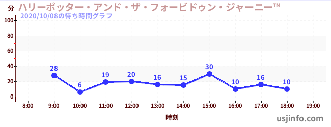 • ハリーポッター・アンド・ザ・フォービドゥン・ジャーニー™$B$N(B2020年10月08日の待ち時間