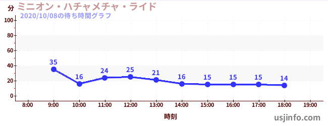 • ミニオン・ハチャメチャ・ライド$B$N(B2020年10月08日の待ち時間