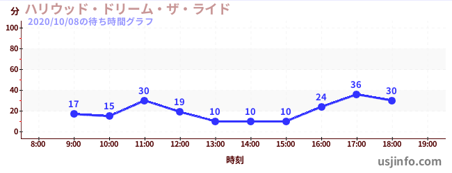 • ハリウッド・ドリーム・ザ・ライド$B$N(B2020年10月08日の待ち時間