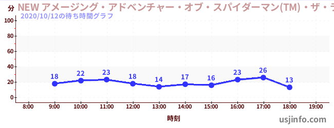 • NEW アメージング・アドベンチャー・オブ・スパイダーマン(TM)・ザ・ライド 4K3D$B$N(B2020年10月12日の待ち時間