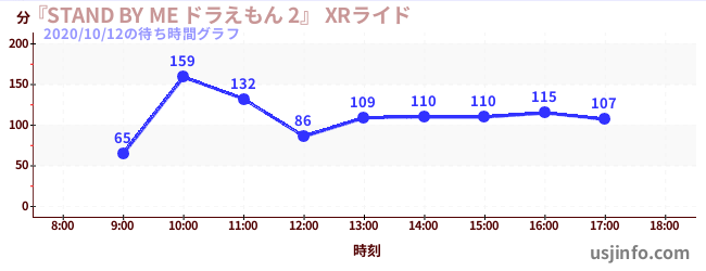 • 『STAND BY ME ドラえもん 2』 XRライド$B$N(B2020年10月12日の待ち時間
