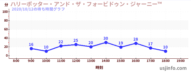• ハリーポッター・アンド・ザ・フォービドゥン・ジャーニー™$B$N(B2020年10月12日の待ち時間