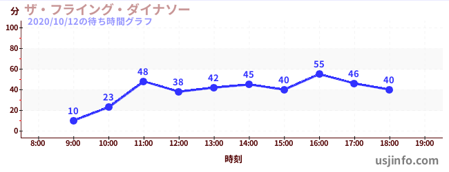 • ザ・フライング・ダイナソー$B$N(B2020年10月12日の待ち時間