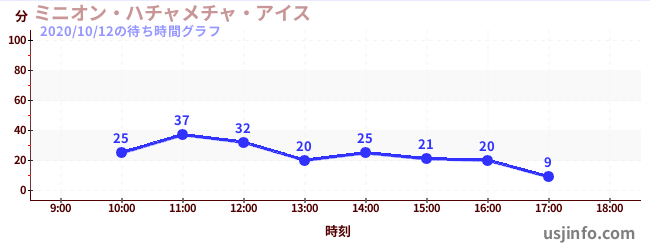 • ミニオン・ハチャメチャ・ライド$B$N(B2020年10月12日の待ち時間