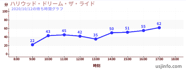 • ハリウッド・ドリーム・ザ・ライド$B$N(B2020年10月12日の待ち時間