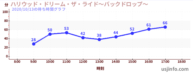 • ハリウッド・ドリーム・ザ・ライド〜バックドロップ〜$B$N(B2020年10月13日の待ち時間