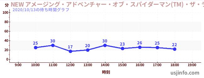 • NEW アメージング・アドベンチャー・オブ・スパイダーマン(TM)・ザ・ライド 4K3D$B$N(B2020年10月13日の待ち時間