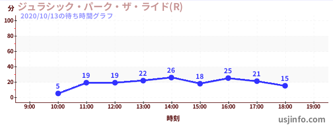 • ジュラシック・パーク・ザ・ライド(R)$B$N(B2020年10月13日の待ち時間