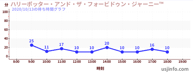 • ハリーポッター・アンド・ザ・フォービドゥン・ジャーニー™$B$N(B2020年10月13日の待ち時間