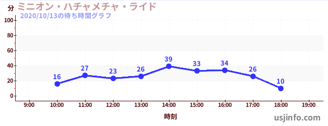 • ミニオン・ハチャメチャ・ライド$B$N(B2020年10月13日の待ち時間