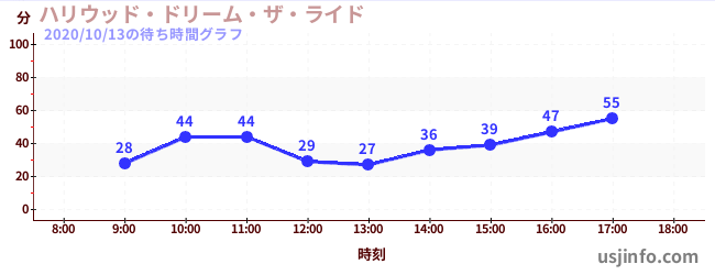 • ハリウッド・ドリーム・ザ・ライド$B$N(B2020年10月13日の待ち時間
