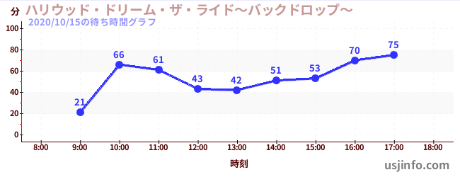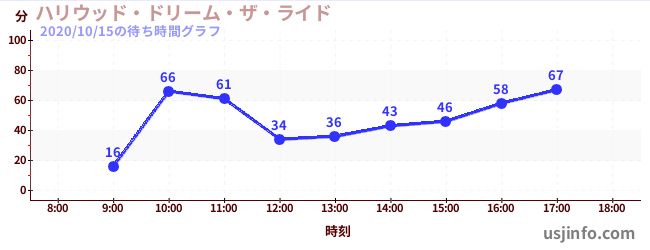 • ハリウッド・ドリーム・ザ・ライド〜バックドロップ〜$B$N(B2020年10月15日の待ち時間
