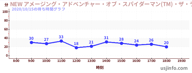 • NEW アメージング・アドベンチャー・オブ・スパイダーマン(TM)・ザ・ライド 4K3D$B$N(B2020年10月15日の待ち時間