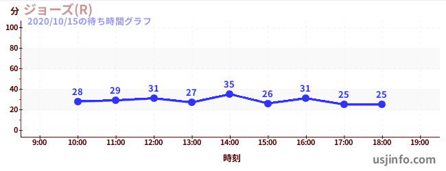 • ジョーズ(R)$B$N(B2020年10月15日の待ち時間