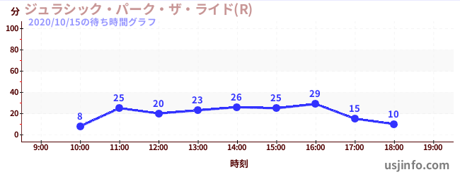 • ジュラシック・パーク・ザ・ライド(R)$B$N(B2020年10月15日の待ち時間