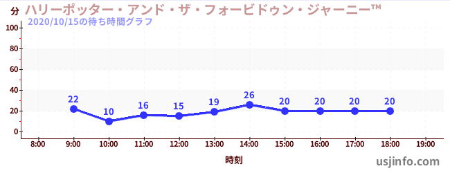 • ハリーポッター・アンド・ザ・フォービドゥン・ジャーニー™$B$N(B2020年10月15日の待ち時間