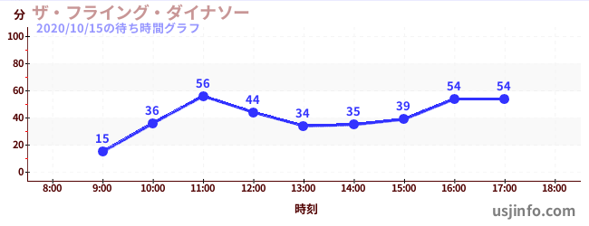 • ザ・フライング・ダイナソー$B$N(B2020年10月15日の待ち時間