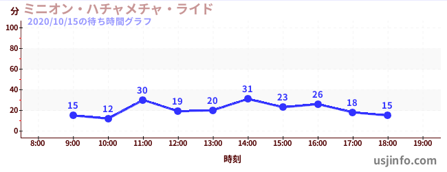 • ミニオン・ハチャメチャ・ライド$B$N(B2020年10月15日の待ち時間