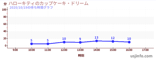 • ハローキティのカップケーキ・ドリーム$B$N(B2020年10月19日の待ち時間