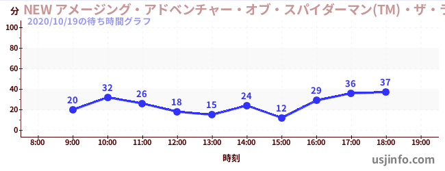 • NEW アメージング・アドベンチャー・オブ・スパイダーマン(TM)・ザ・ライド 4K3D$B$N(B2020年10月19日の待ち時間