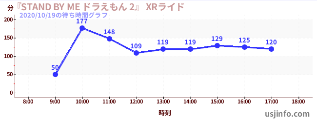 • 『STAND BY ME ドラえもん 2』 XRライド$B$N(B2020年10月19日の待ち時間