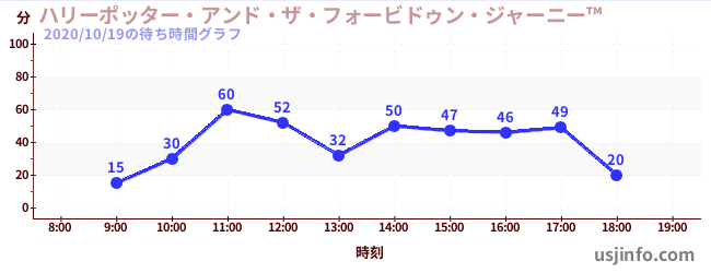 • ハリーポッター・アンド・ザ・フォービドゥン・ジャーニー™$B$N(B2020年10月19日の待ち時間