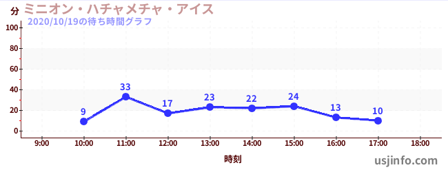 • ミニオン・ハチャメチャ・アイス$B$N(B2020年10月19日の待ち時間