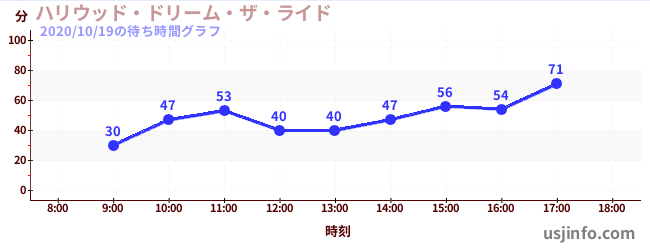 • ハリウッド・ドリーム・ザ・ライド$B$N(B2020年10月19日の待ち時間