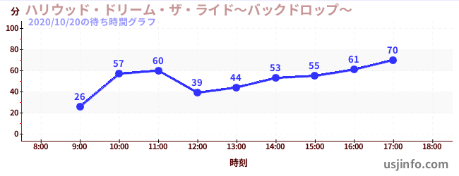 • ハリウッド・ドリーム・ザ・ライド〜バックドロップ〜$B$N(B2020年10月20日の待ち時間