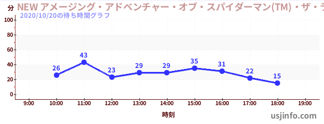 • NEW アメージング・アドベンチャー・オブ・スパイダーマン(TM)・ザ・ライド 4K3D$B$N(B2020年10月20日の待ち時間
