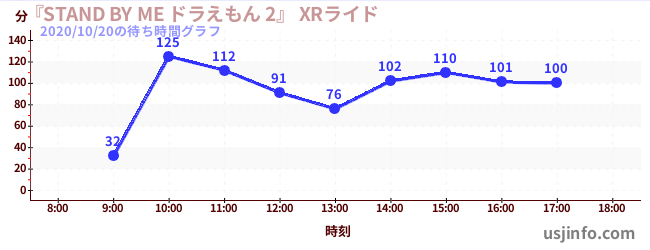 • 『STAND BY ME ドラえもん 2』 XRライド$B$N(B2020年10月20日の待ち時間