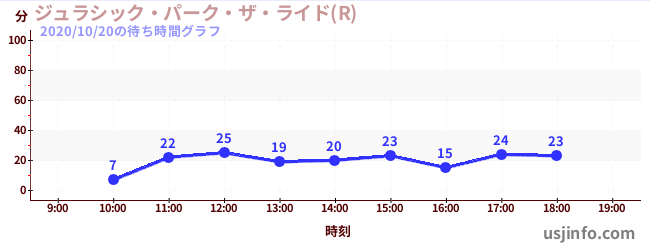 • ジュラシック・パーク・ザ・ライド(R)$B$N(B2020年10月20日の待ち時間