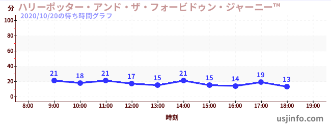 • ハリーポッター・アンド・ザ・フォービドゥン・ジャーニー™$B$N(B2020年10月20日の待ち時間
