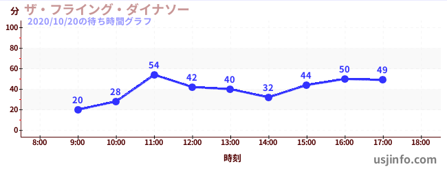 • ザ・フライング・ダイナソー$B$N(B2020年10月20日の待ち時間