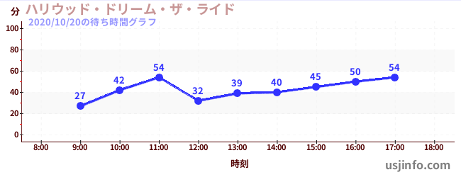 • ハリウッド・ドリーム・ザ・ライド$B$N(B2020年10月20日の待ち時間