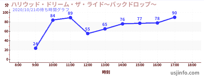 • ハリウッド・ドリーム・ザ・ライド〜バックドロップ〜$B$N(B2020年10月21日の待ち時間